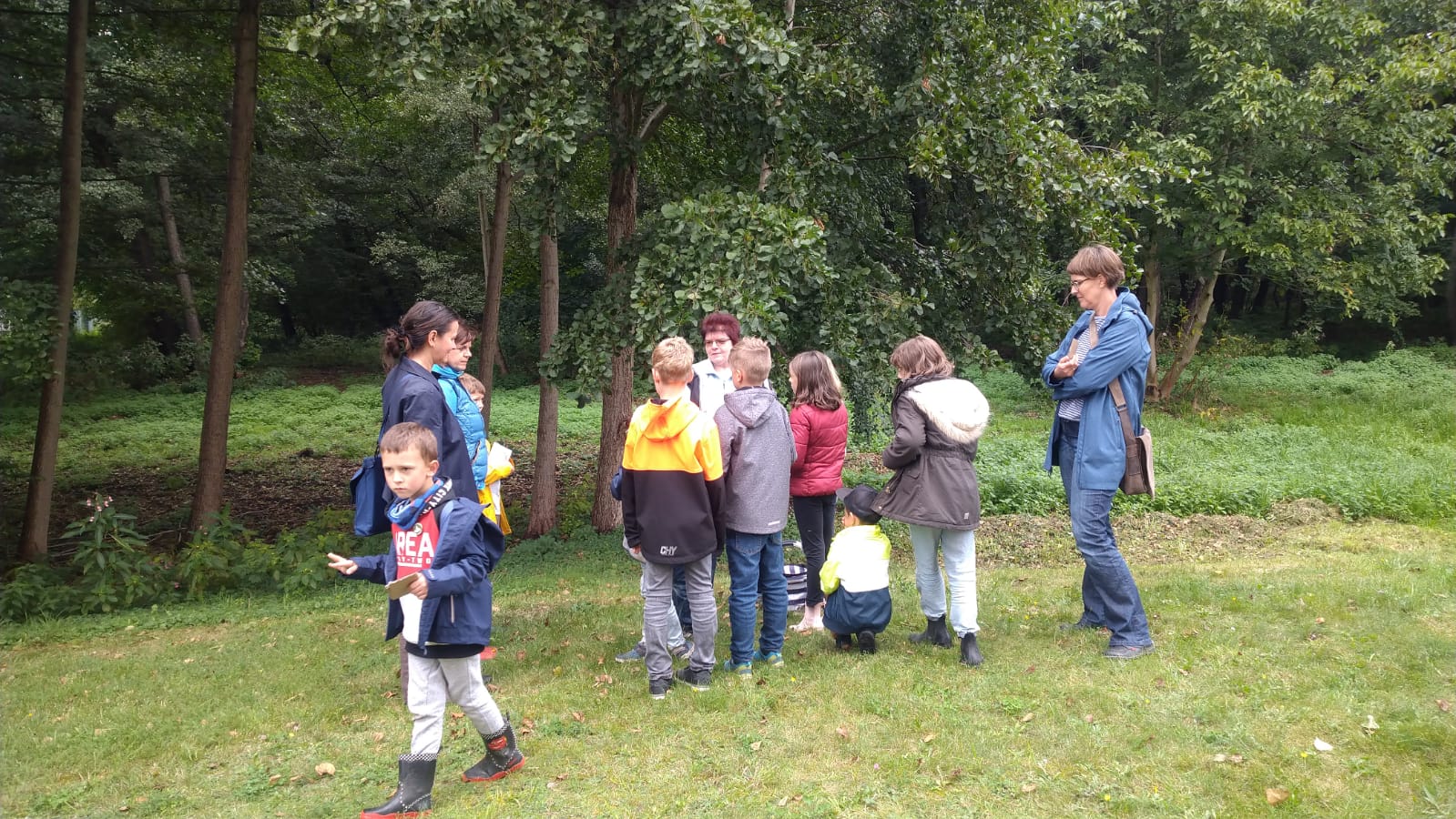 Wir begrüßten viele neue Kinder aus der ITBL zu unserem diesjährigen Baumfreunde-Kinder-Kurs. Bei unerwartet gutem Wetter haben wir heute eine Wanderung mit der Natur- und Wanderführerin Gabriele Wichary durch das Kloster unternommen. Sie hatte ein Baumquiz auf Karten vorbereitet und die Aufgabe der Kinder war es, die entsprechenden Baumarten im Klostergelände zu suchen und zu finden.