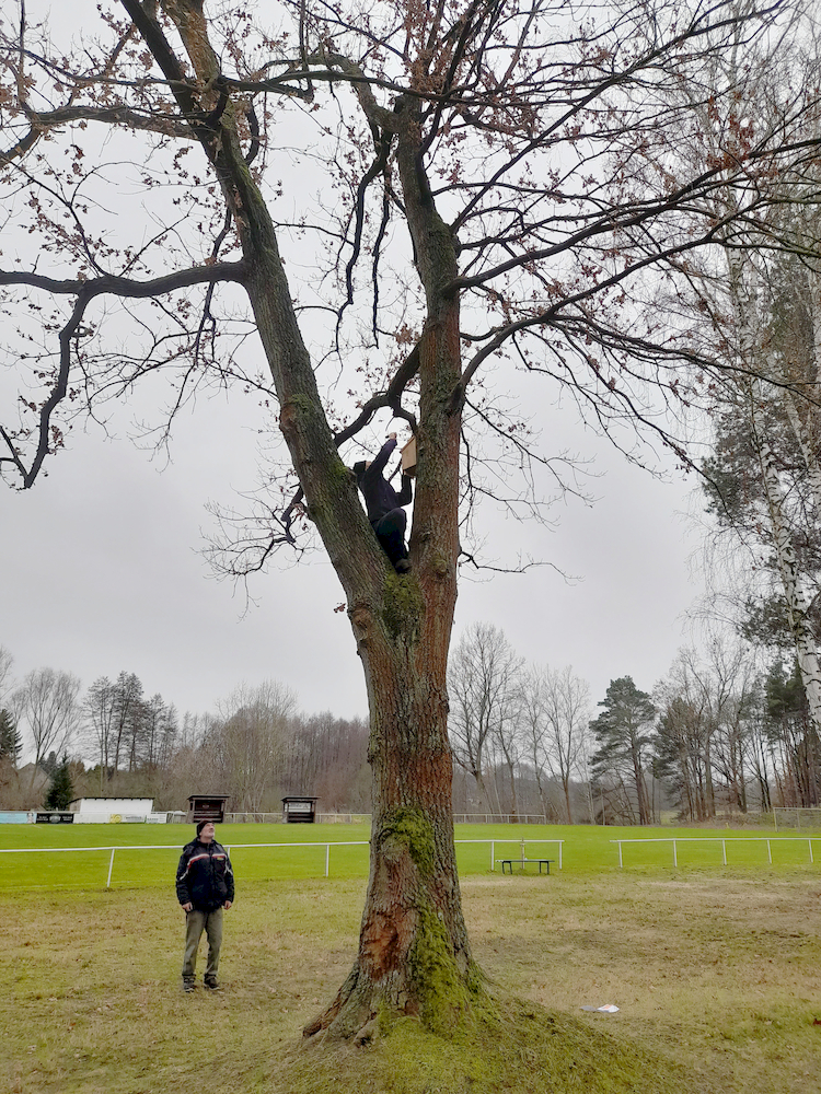 Die Baumfreunde Kloster Lehnin e. V. und Herr Lutz Manzke haben nun Anfang dieses Jahres auf Initiative der Gemeindeverwaltung insgesamt 18 Nistkästen an gemeindeeigenen Kastanien und Eichen in Lehnin, Rädel ,Emstal und Trechwitz aufgehängt. Darin sollen sich Meisen ansiedeln, die diese Insekten möglichst großflächig fressen. Die Idee ist, dass die Natur so ihre „Probleme“ selbst regelt. Denn wenn gegen die Insekten stattdessen mit einer „chemischen Keule“ vorgegangen wird, würde man ja nicht nur die Miniermotte und den Eichenprozessionsspinner abtöten, sondern auch jedes andere Lebewesen an dem Baum. Gleichzeitig sollen damit auch die Gefahren (wie z. B. Hautreizungen), die von diesen Insekten auf Menschen ausgehen können, in unmittelbarer Umgebung der Bäume reduziert werden. In den restlichen Ortsteilen der Gemeinde wird der Baubetriebshof Nistkästen für Meisen und Fledermäuse zeitnah aufhängen. Wir hoffen, dass sich in diesen Kästen dann viele Meisen ansiedeln, so dass das Projekt erfolgreich verläuft.