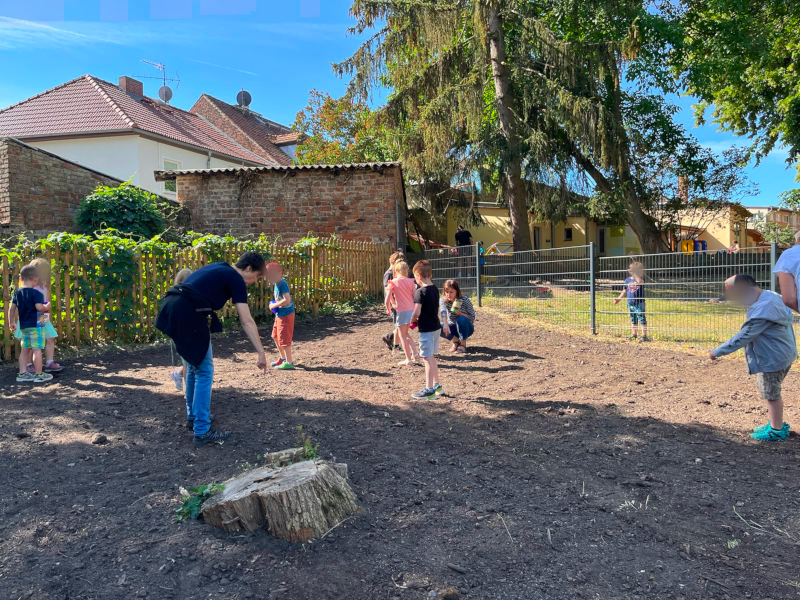 Die Wiese wurde vorab von dem Garten-und Landschaftspflegeteam des Klostergeländes unter der Leitung von Herrn Matthias Haase für unsere Zwecke vorbereitet. Hierfür möchte sich die Kita-Gruppe wie auch wir als Verein uns noch einmal ganz herzlich bedanken.