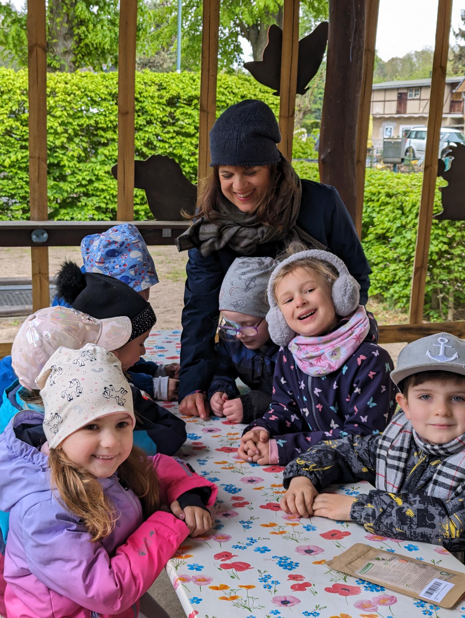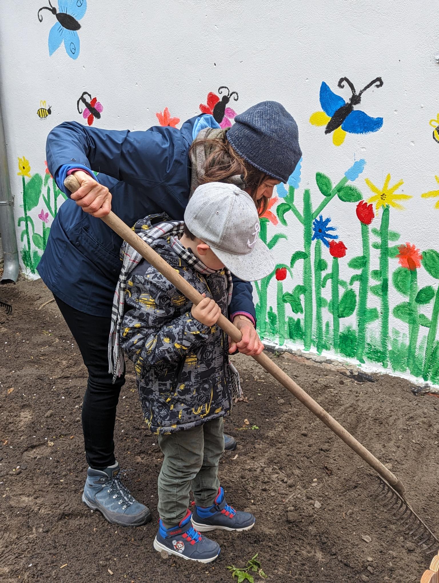 Auf dem Plan stand heute gemeinsam mit den Kindern die versprochene Blühwiese in der Kita anzulegen.