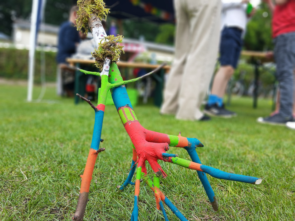 Am Samstag waren die Baumfreunde auf dem Kinderfest in Damsdorf mit einem Stand vertreten, der den kleinsten unter uns den Kindertag versüßt hat, und das im wahrsten Sinne des Wortes! Selbstgebackene, liebevoll verzierte Waldtierkekse und Gummischlangen ließen nicht nur Kinderaugen strahlen. Beim Glücksrad-Drehen konnten die kleinen und großen Teilnehmer aus einer Vielzahl an Preisen wählen: Neben den beliebten Naschereien entschieden sich die Preisträger auch für einen Artikel zum Thema Wildkatze oder einen Dino-Sticker. An unserem Stand konnten die Kinder außerdem ihr Wissen in einem Wald-Quiz testen, handliche Stoffbeutel bemalen und Waldgeister aus Stöckern, Farbe und weiteren Naturmaterialien basteln, was besonders bei den größeren Besuchern beliebt war. Während die Kinder in ihre Aufgaben und Kunstwerke vertieft waren, nutzen wir die Chance, um uns mit den Eltern über unsere Arbeit als Verein zu unterhalten und alle aufkommenden Fragen zu bevorstehenden Projekten zu beantworten.