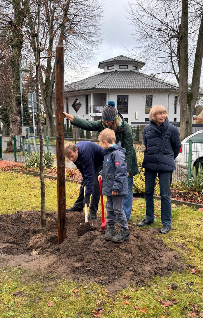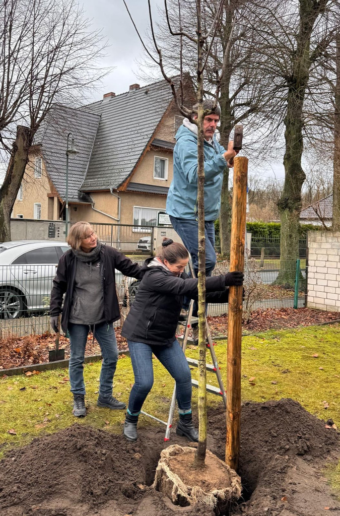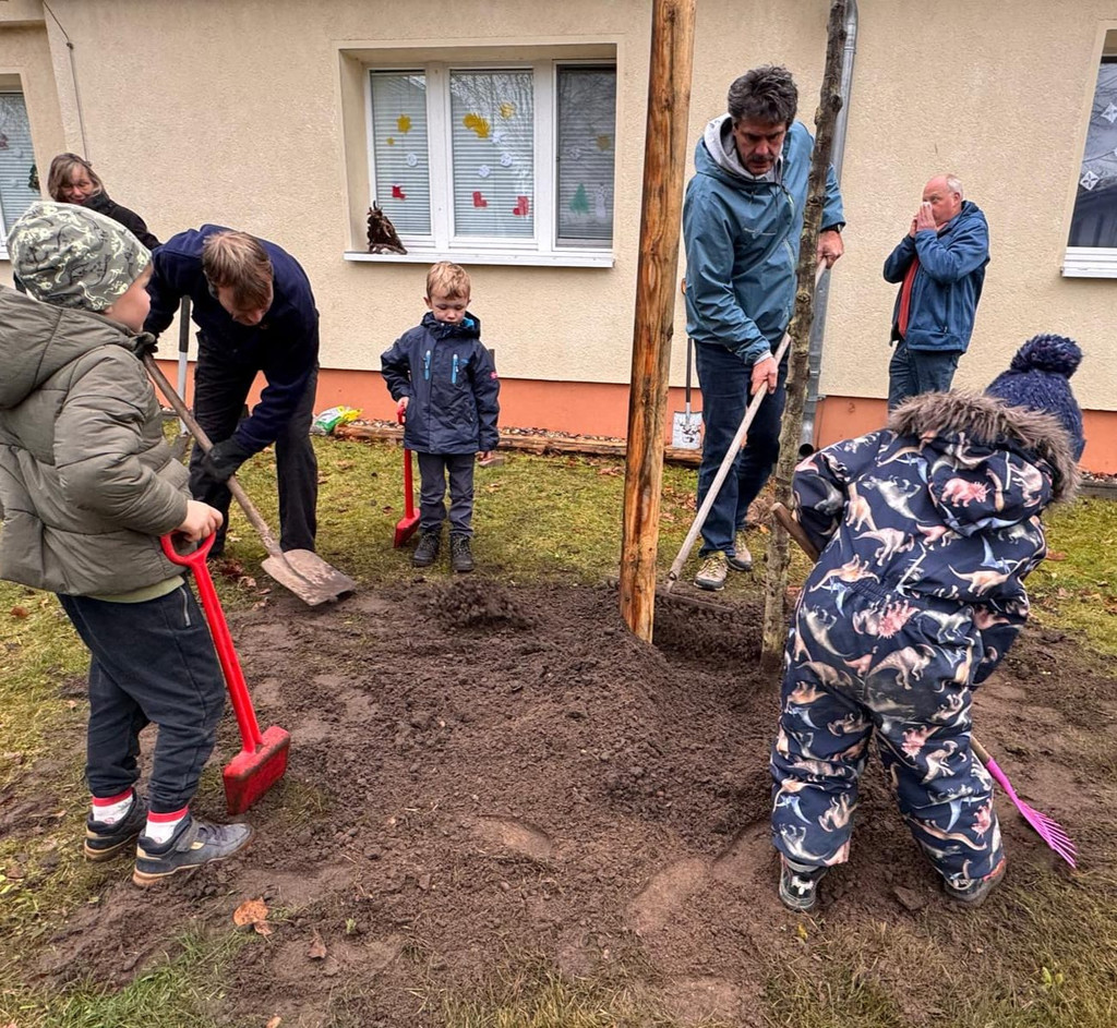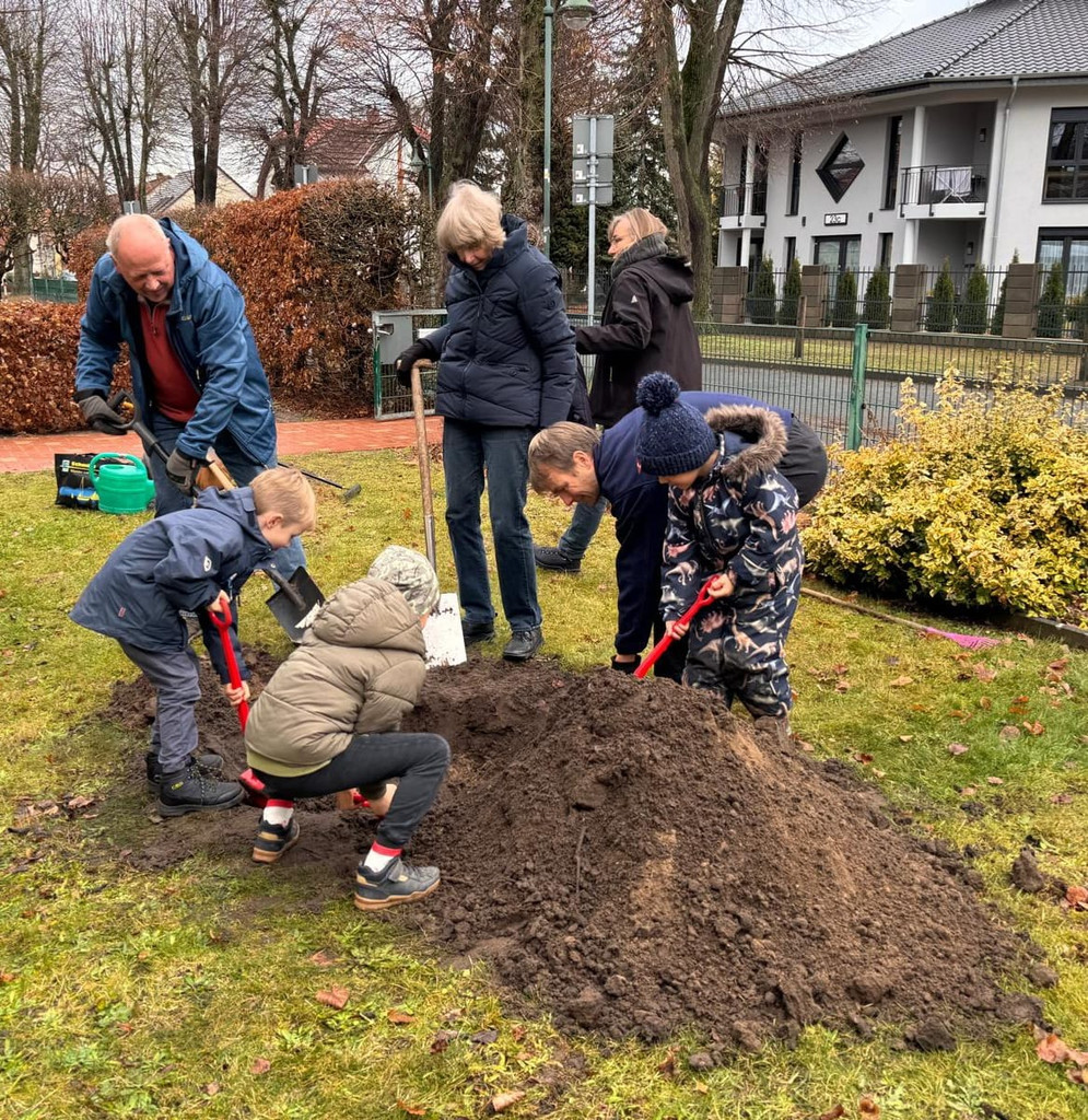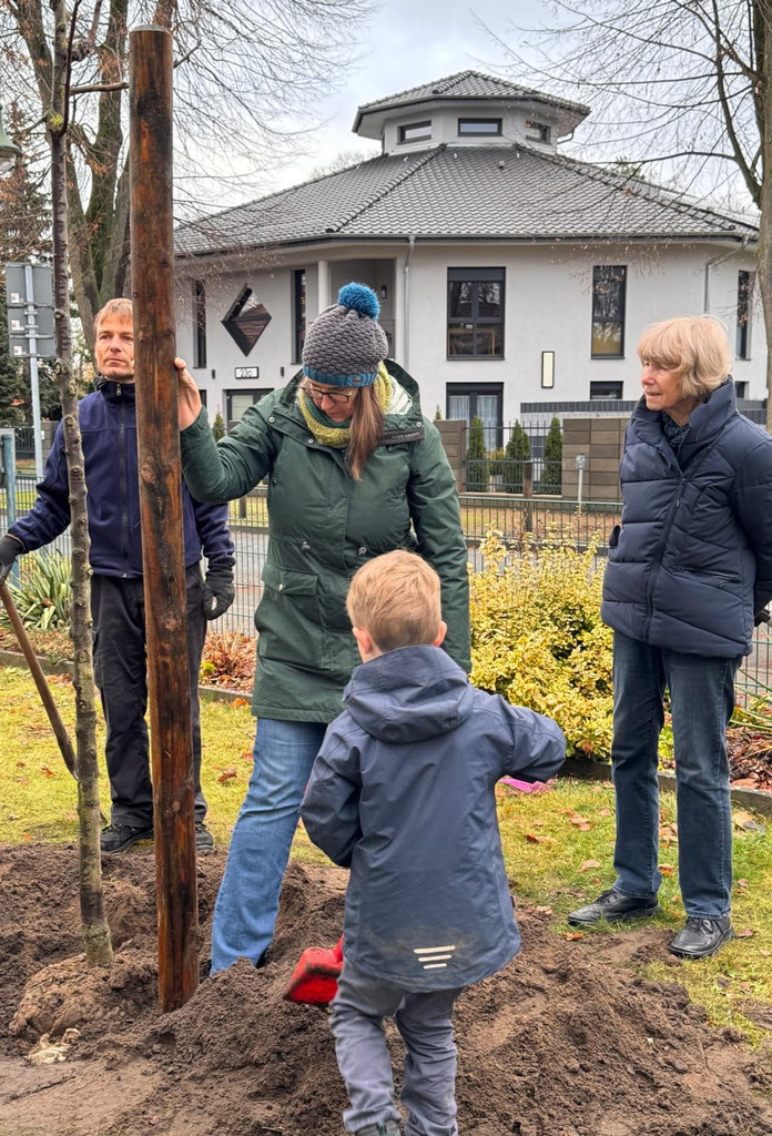 Die Baumfreunde pflanzen mit den Kindern der Kita Knirpsentreff zwei Bäume