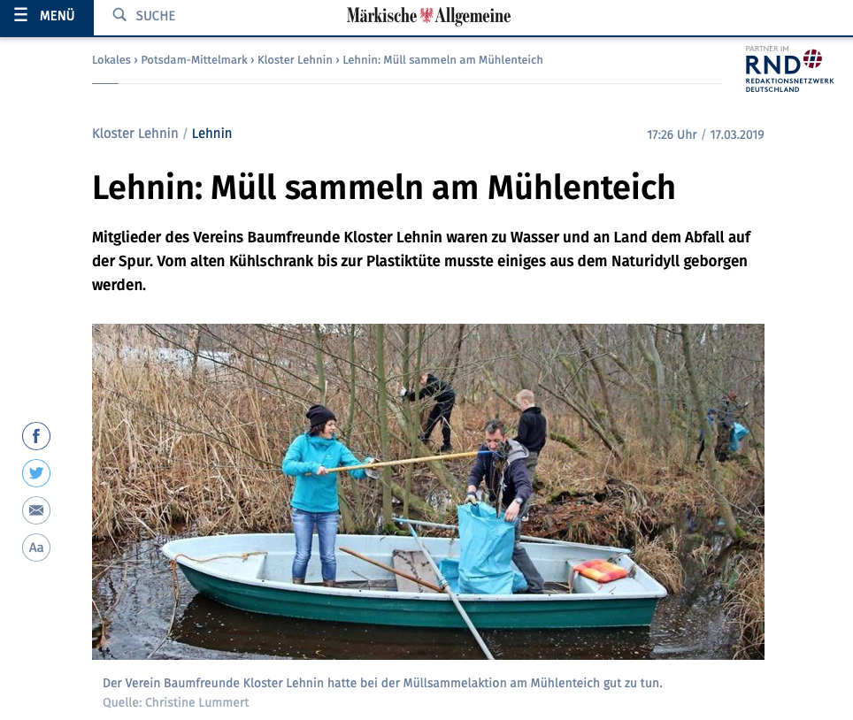 Mitglieder des Vereins Baumfreunde Kloster Lehnin waren zu Wasser und an Land dem Abfall auf der Spur. Vom alten Kühlschrank bis zur Plastiktüte musste einiges aus dem Naturidyll geborgen werden ...
