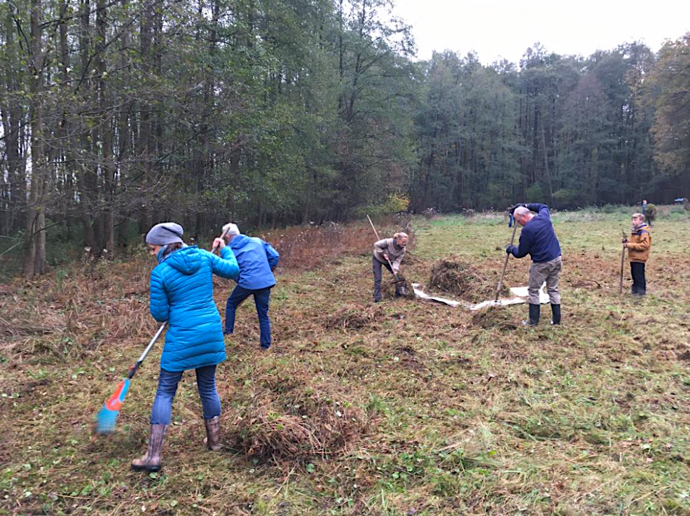 Am 1.11. 2019 waren viele Mitglieder der Baumfreunde Lehnin e.V. dem Aufruf der Oberförsterei Lehnin gefolgt, um bei der Pflege einer Waldwiese zu helfen. 10 Erwachsene und 6 Jugendliche trafen sich um 13:00 Uhr mit Harke, Forke und guter Laune am Ortsrand von Lehnin. Eine Wiese sollte vom Gras des vergangenen Sommers befreit werden.